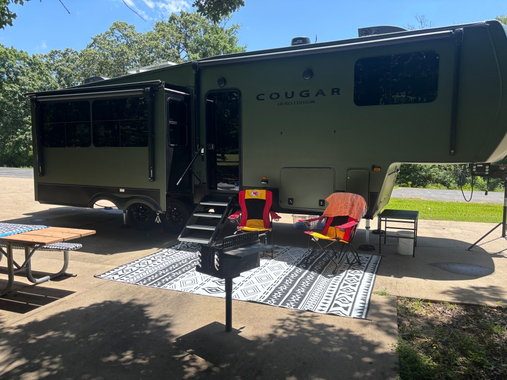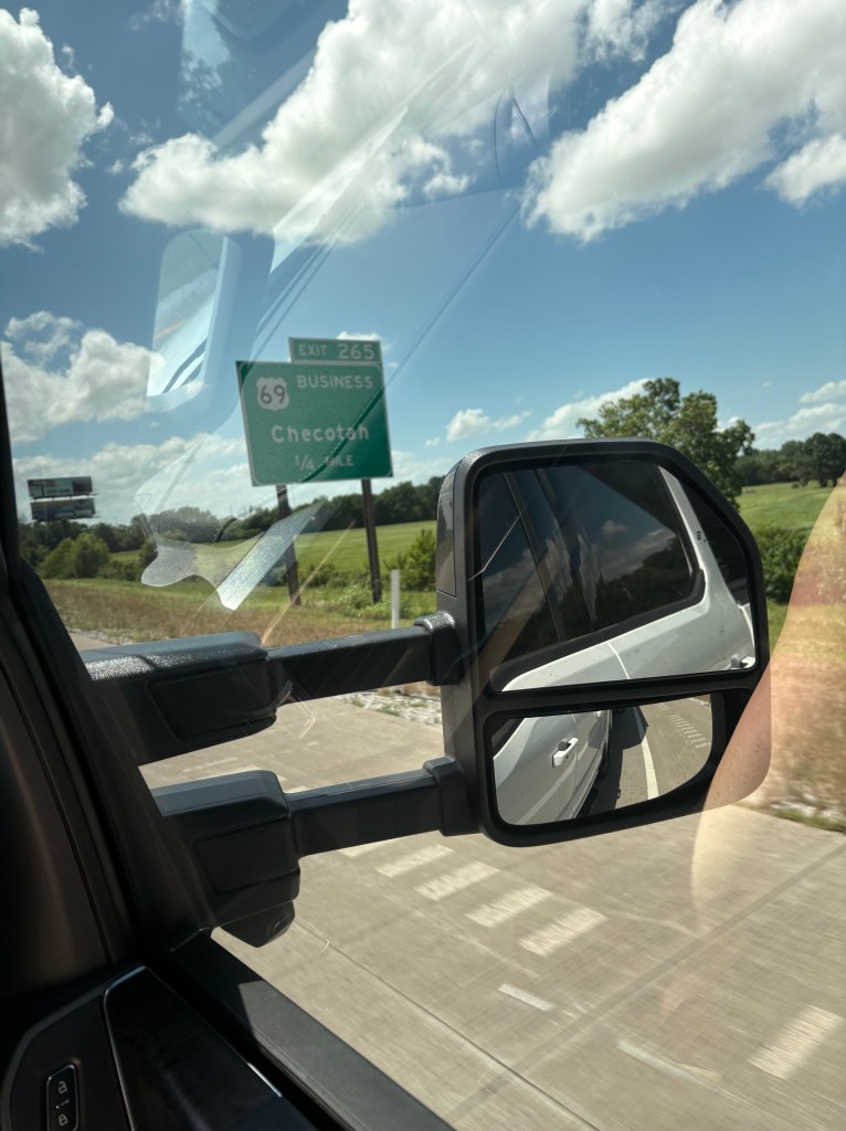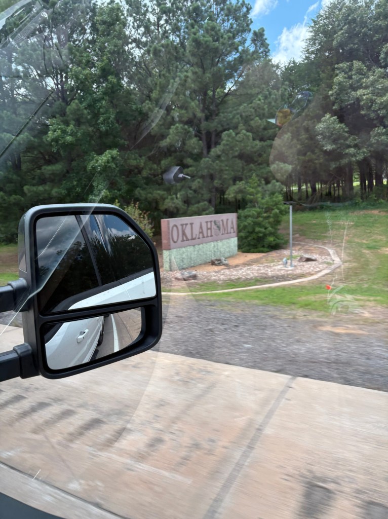 Thanks for patiently waiting for my update to the blog, day 8 was our journey to Southeast Oklahoma to spend the week visiting family. We started the day with no rain, but the humidity made up for it as we were dripping wet after tear down and hook up. I believe I prefer rain as it is much cooler and we are pretty good at working in the rain. Our journey is only 330 miles today or about 5 hours. We are trying to stick to the rule of thumb of traveling only 300 miles a day.