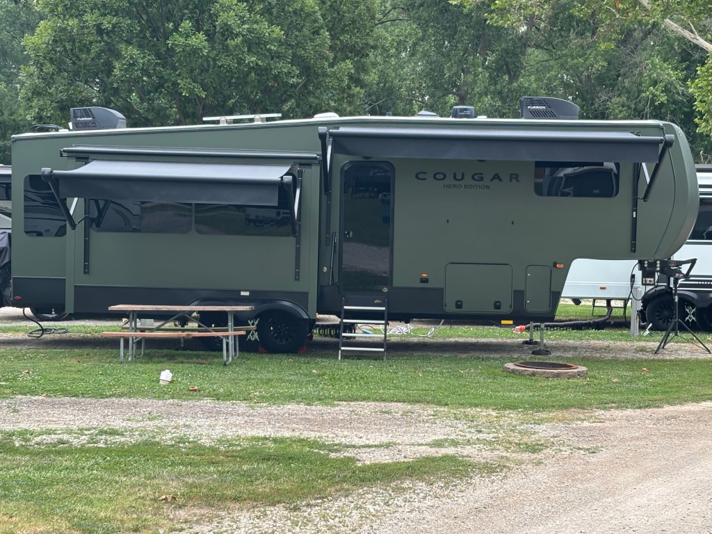 So the fun began as we were about 45 miles out from our stop at the KOA in Lawrence, Kansas. The RV Life GPS app that we are using for our travels stopped working and thank goodness we realized it stopped working. We would have missed our exit and ended up touring more of Kansas or worse have to backup out of trouble. Theresa navigated us the rest of the way and kept me on point as I was freaking out a bit about the GPS not working. What would we do without GPS, go back to Map Quest? It was a good test for me with listening to Theresa and not causing her to want to kill me!