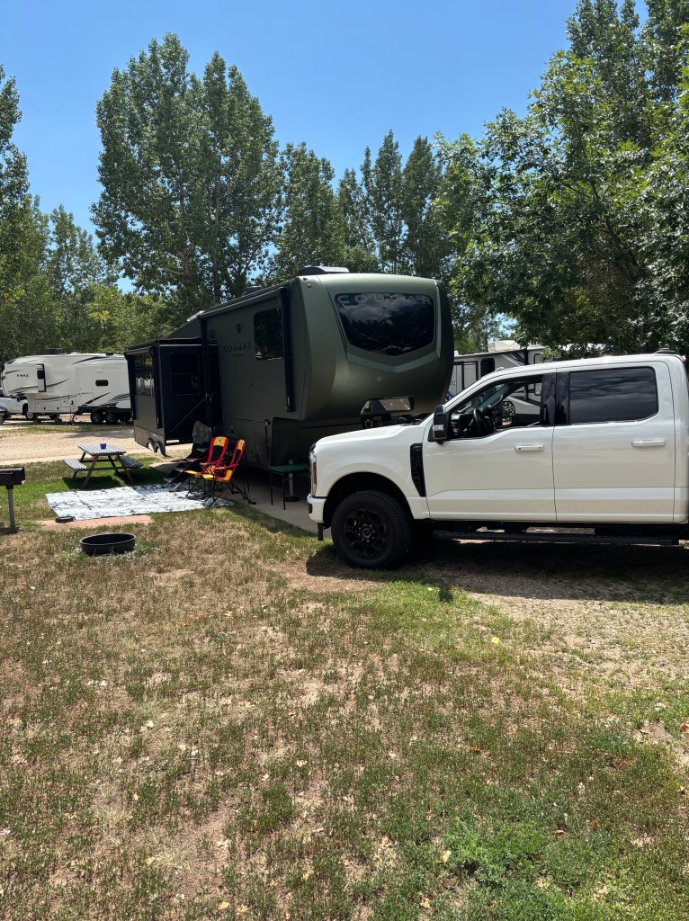 We made it safely to the Fort Collins KOA and we were set-up in record time. Theresa and I are figuring out how to better tag team the set-up. The KOA is busy as expected with campers and families everywhere. We were hoping for a better view. We have quickly learned that KOAs are not located in the most scenic areas.
