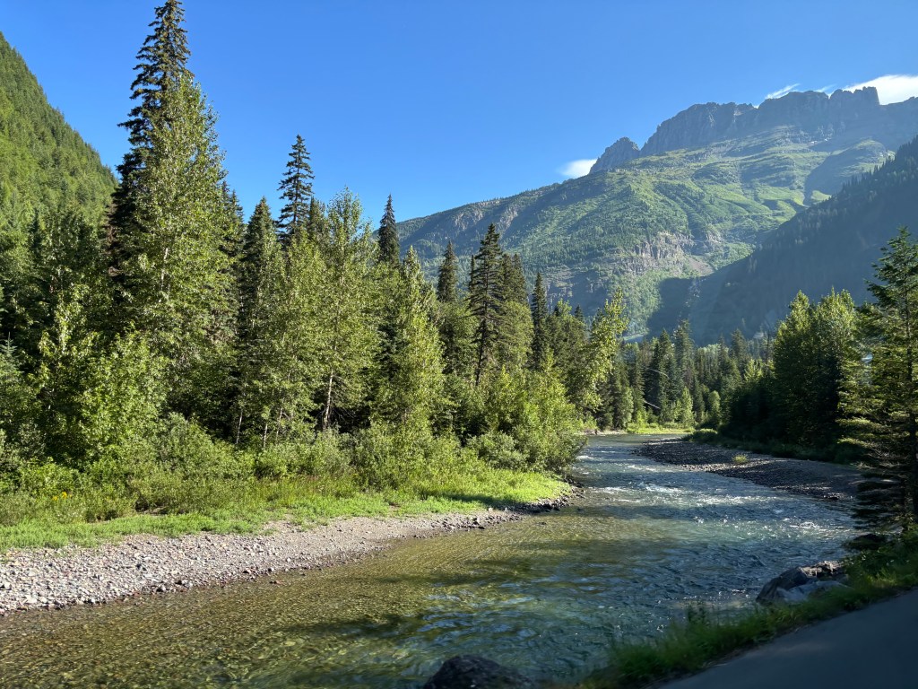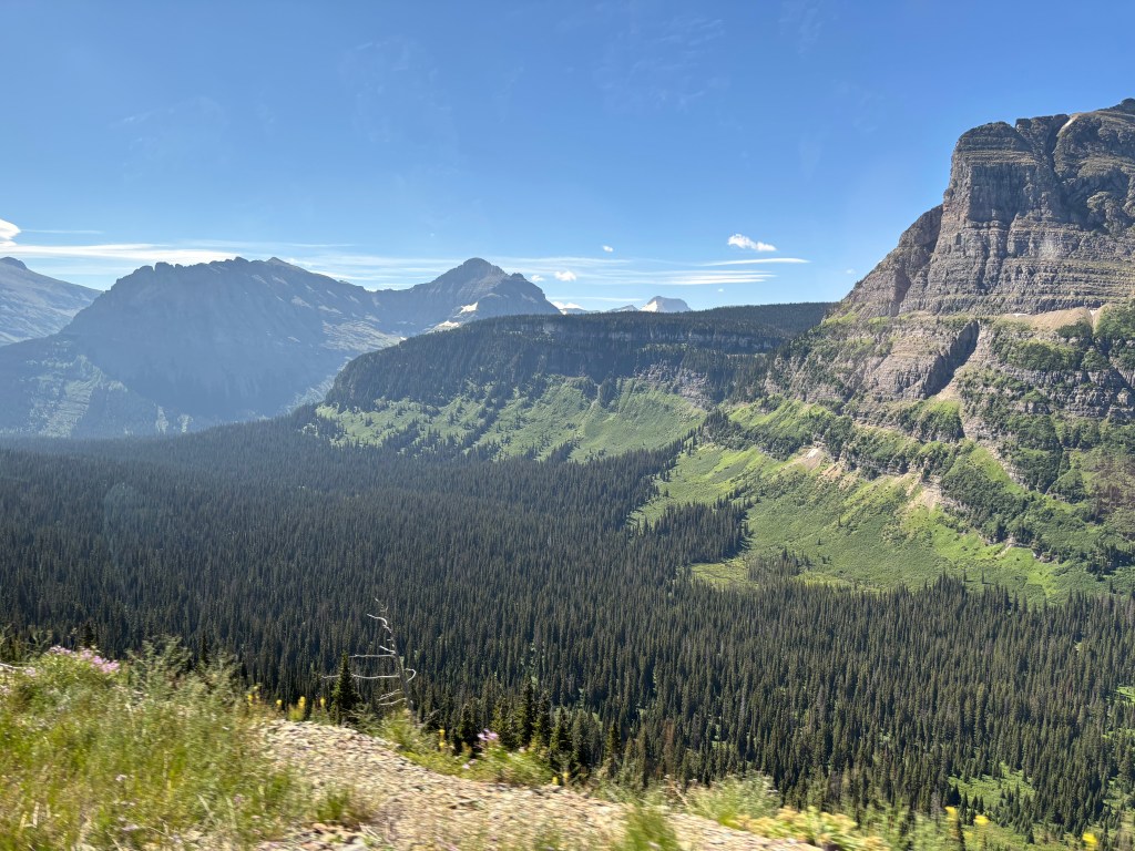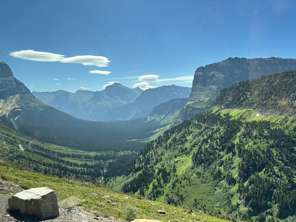 We started our first full day in Glacier National Park taking a guided tour through the Glacier Institute. The tour was the “Going to the Sun Road.” It is an engineering marvel that spans from the West entrance to the East entrance. It should be on your National Parks must dos as the views are incredible! We spent 8 hours enjoying the scenic views and the history of the park. Julia our tour guide was incredible and very knowledgeable of the park. She also was very skilled driving the winding and narrow road while providing us amazing information. We were also blessed with amazing weather as you will see in the pictures. Clear skies made for impressive views and million dollar photo opportunities. Theresa booked a perfect tour and she enjoyed the ride even with the high views! We did switch seats on the bus quite often depending which side had the drop off. Glacier National Park did not disappoint, amazing place!
