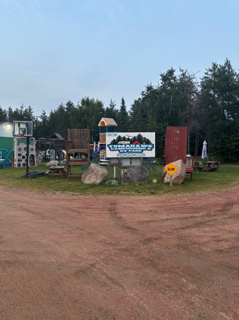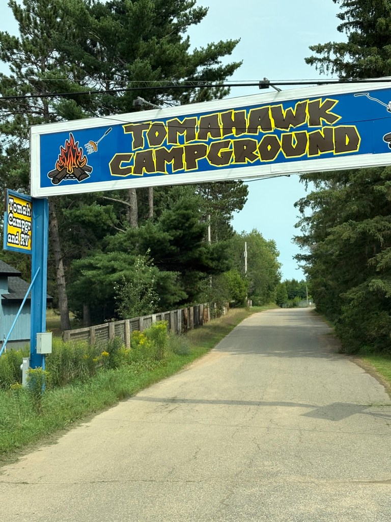 The trip to Wisconsin started off with a few hiccups as the GPS was not recognizing the road closure. We had our first real issue with agreeing on the route. I was not listening to my beautiful bride, never good! So we took a long detour until Theresa was willing to talk to me again. She took over as the master navigator and we got back on track. It was a very quiet road trip to Wisconsin as Theresa was not happy with me. We quietly enjoyed the beautiful ride through Wisconsin and made it safely to the Tomahawk RV Park. We have visited Tomahawk a couple times on vacation before. We are excited to spend time visiting our favorite places.