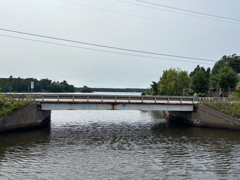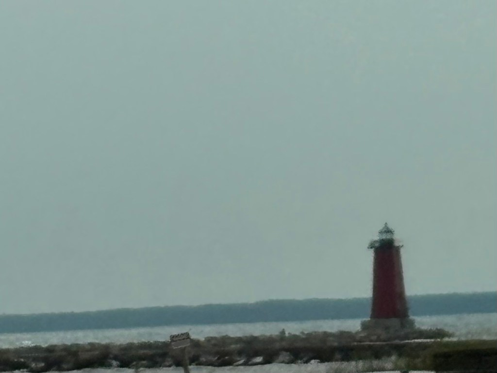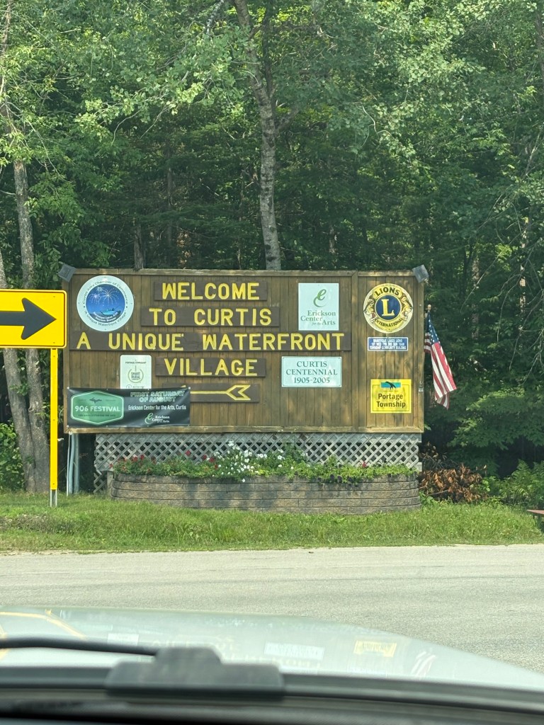 We spent day 60 exploring the area starting with an amazing breakfast! We stopped at the local True Value Hardware to get a coax cable. We needed it to hook up to cable. The streaming was not good and Theresa was not going to go without TV. Curtis is a quaint town on the lake and we enjoyed the 3 minute drive through town. We headed to the other side of the lake. We wanted to visit the Moose Du Nord. It was advertised as if it was a Buck-ees of the UP. It definitely was not and we almost didn’t stop as it looked a bit sketchy. We decided to get gas at the oldest pump that I have used in a long time. It didn’t even have pay at the pump. We then headed in and did some browsing of the gift shop. It was a nice place but no brisket sandwiches just pizza and coffee. We headed back to the RV and hooked up the cable TV for Theresa. We then took a walk down to the lake where Theresa found her souvenir rocks to take home. We wrapped up the day with steaks on the grill. We ended the day with a quiet evening.